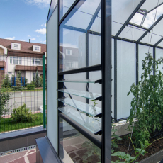 Откидная ручная форточка обеспечивает дополнительное сквозное проветривание, и вы гибко регулируете температуру внутри, предотвращая перегрев растений.