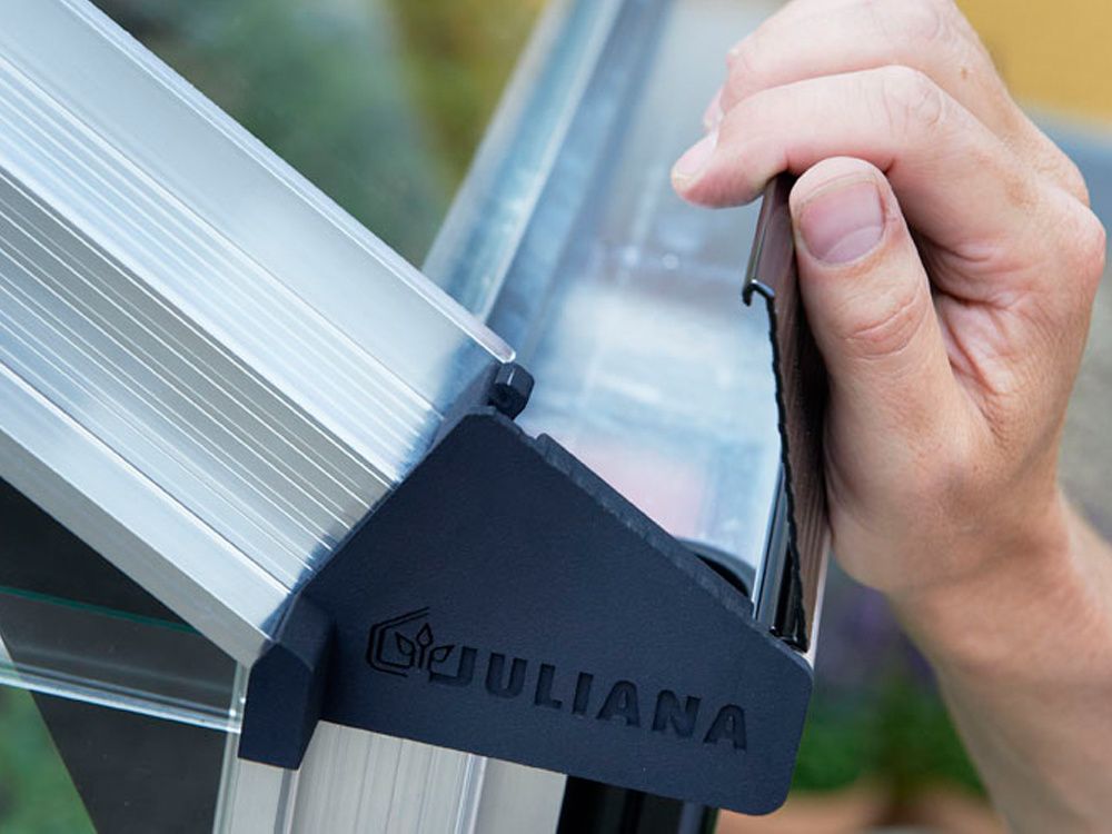 Juliana Premium — это надёжная стеклянная теплица с алюминиевым каркасом, которая сочетает европейское качество, долговечность и стильный внешний вид, становясь украшением любого участка.